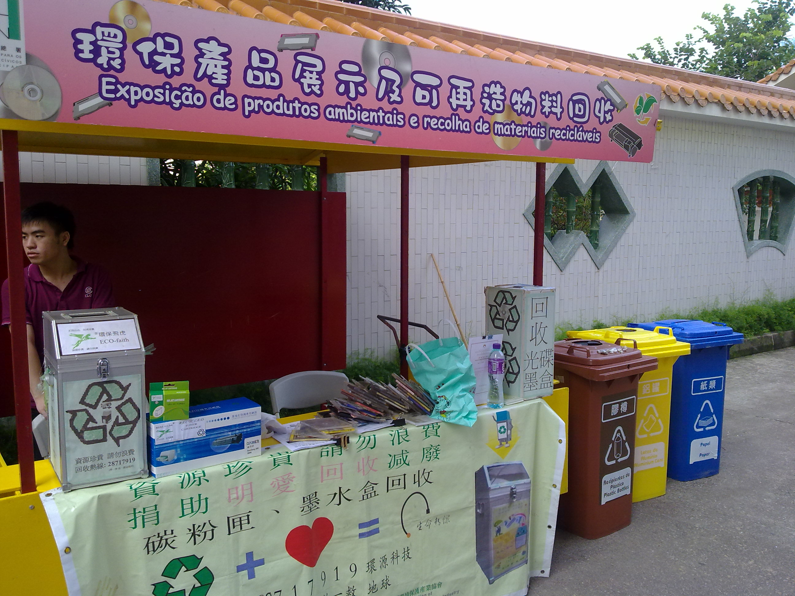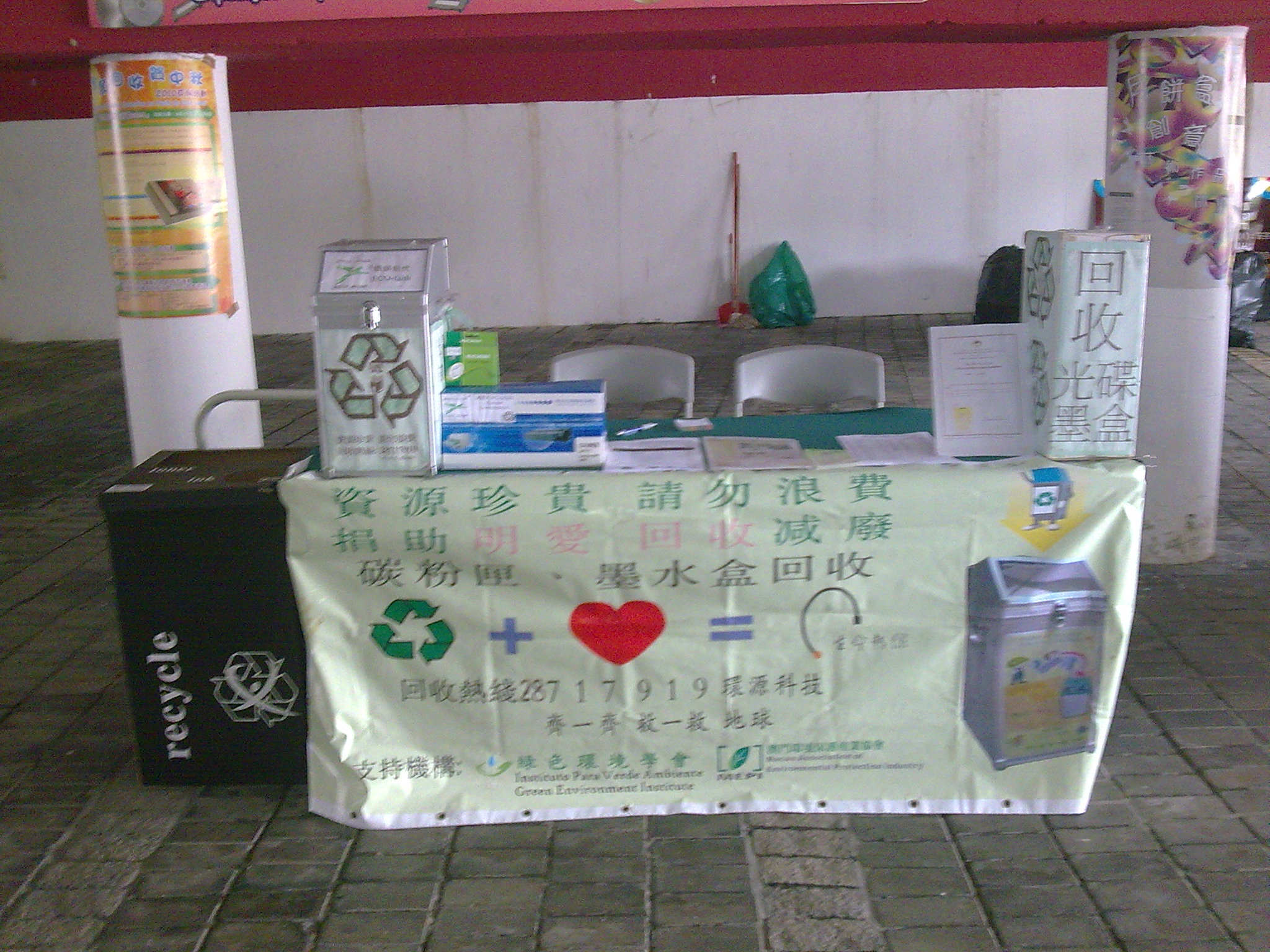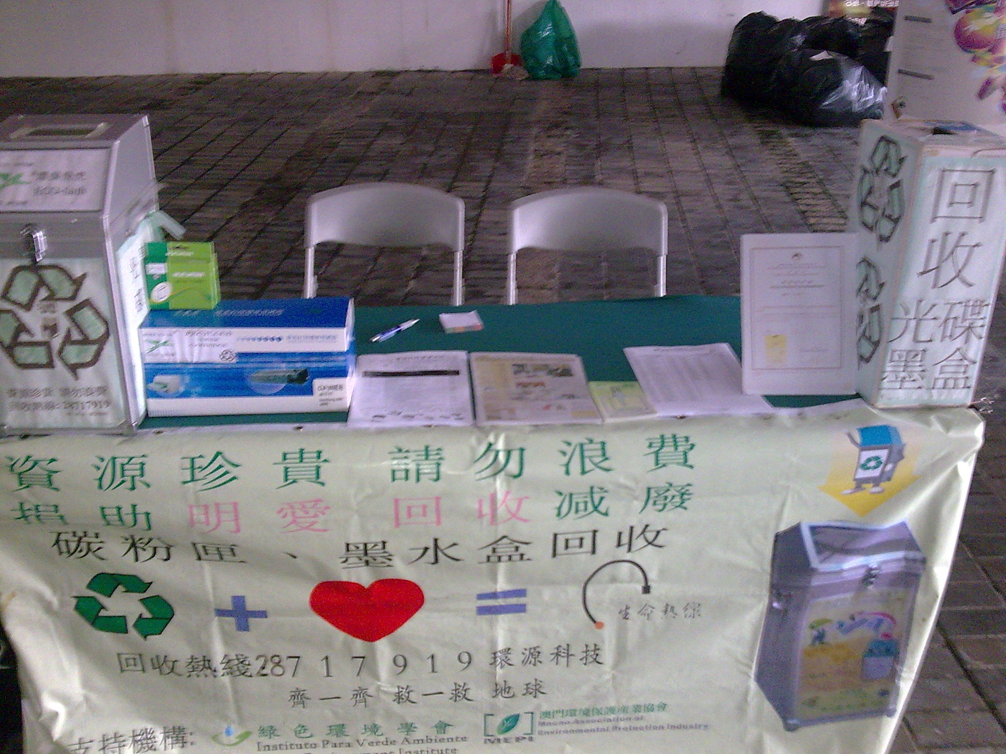 為響應由民政總署組織舉辦“環保行動獻愛心”活動,設立回收攤位收集居民的資源垃圾、舊衣物,打印機墨水匣、碳粉盒和光碟等物,以達到減少浪費、善用資源之目的。