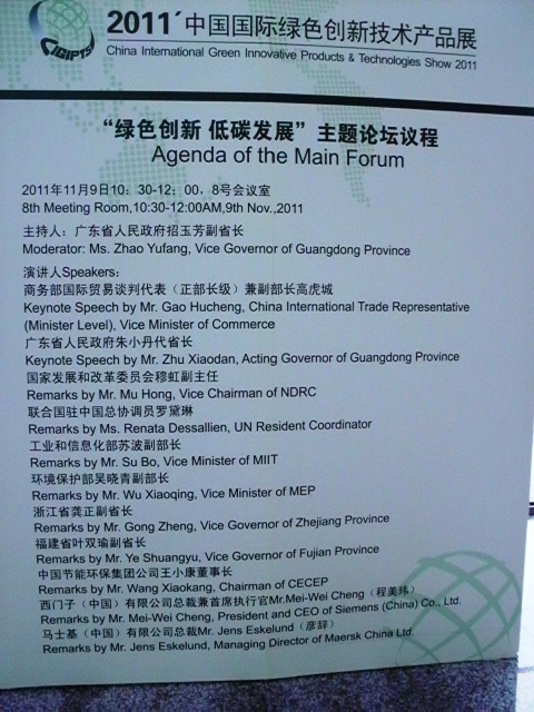 主題論壇“綠色創新 低碳發展”也同時在展會期間舉行,中國商務部、發改委、工信部、環保部官員以及聯合國駐中國協調員等代表出席,共同探討綠色低碳創新與未來發展。