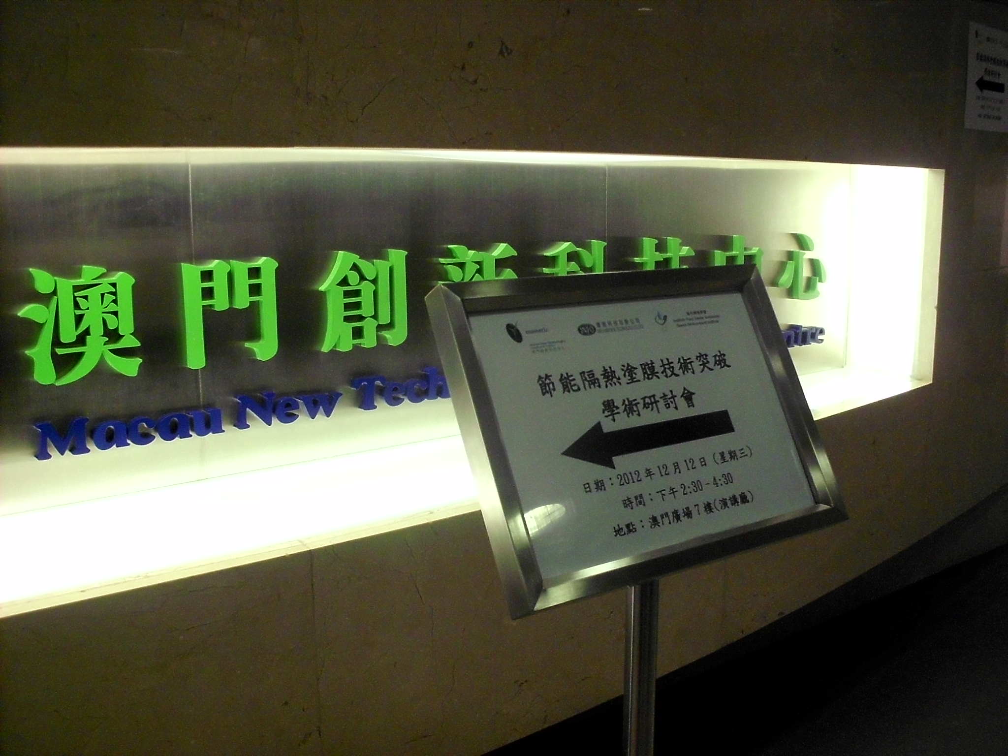 澳門近10年高速城市化過程中,大量玻璃幕牆大樓做成的熱島效應,如何提供科學控制的依據?為了更好推廣國內外首創革命性節能隔熱玻璃塗膜技術及其應用範圍,澳門創新科技中心成員環能科技有限公司邀請研發此技術的科研專家及其合作夥伴,夲地企業家,學者及科研機構於2012年12月12日 (星期三) 下午2時半,在澳門廣場七樓創新科技中心演講廳舉辦「節能隔熱塗膜技術突破學術研討會」,並邀請業界、商界和媒體等進行研討及合作交流,為環保節能減排低碳的生活出謀獻策,共同打造世界旅遊休閒中心!