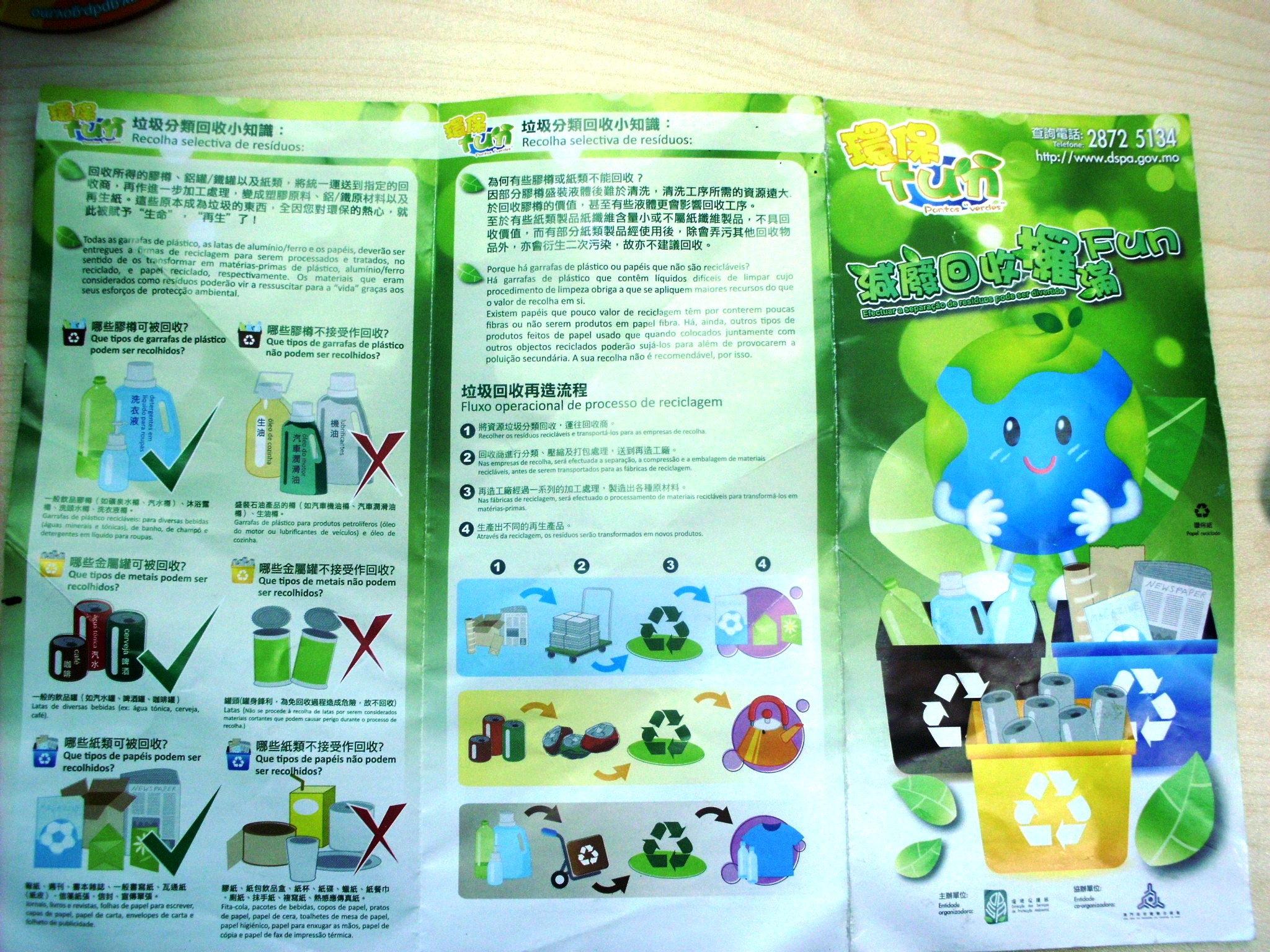為推動市民學習更多資源垃圾分類回收的相關知識,民署亦於同日在塔石廣場的回收攤位增設再造紙工作坊、澳門城市清潔運動圖片展及環保勞作創作比賽優秀作品展供市民參與及參觀,藉此加深市民認識資源垃圾的再利用及其可塑性。