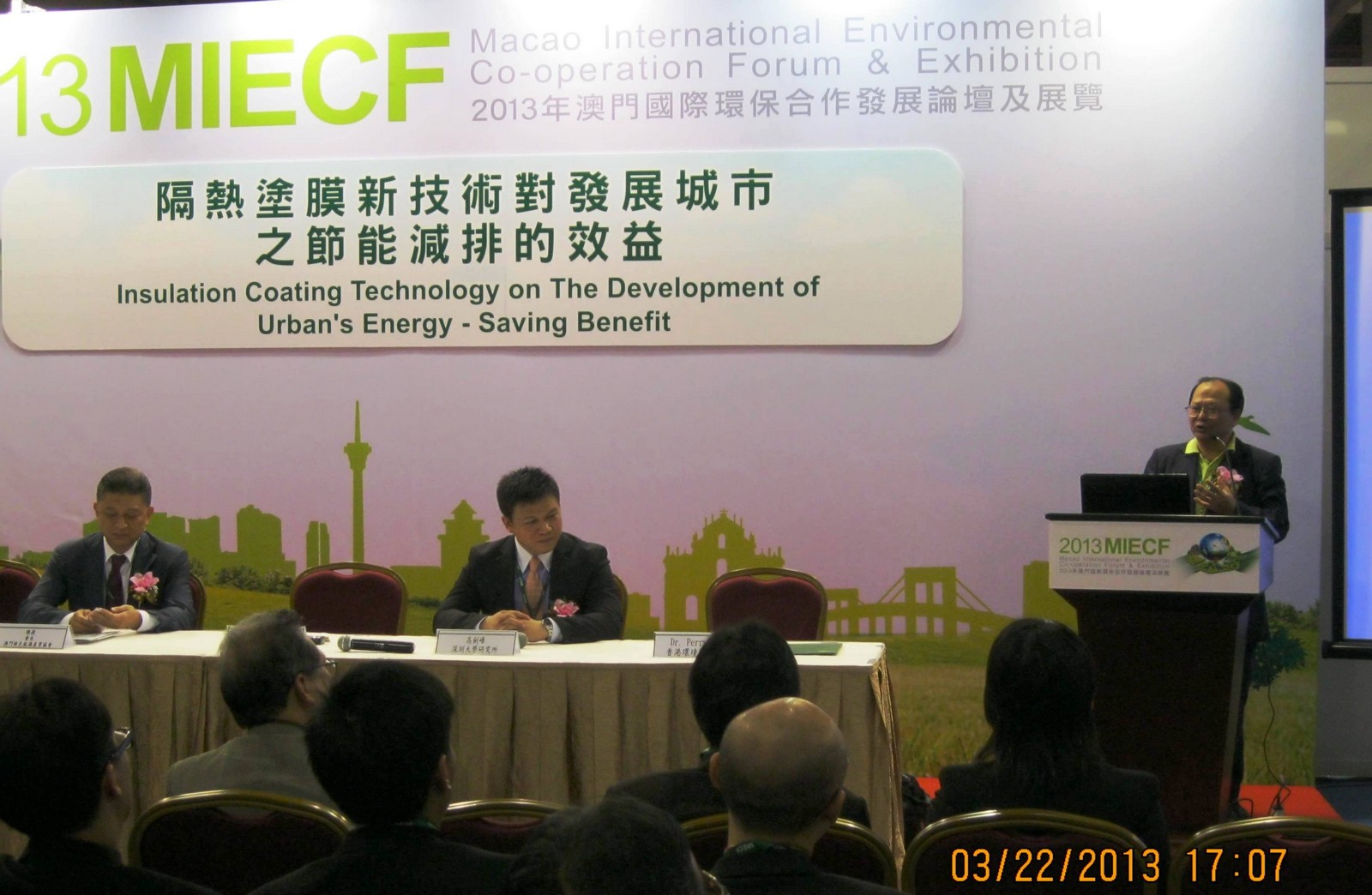 「2013澳門國際環保合作發展論壇及展覽」(MIECF) —「隔熱塗膜新技術對發展城市之節能減排的效益」論壇